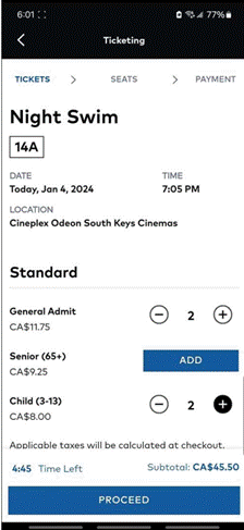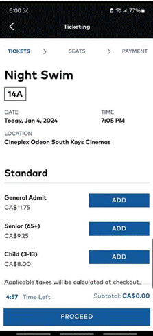 Appendix 4: Movie ticket purchase process on the Cineplex app